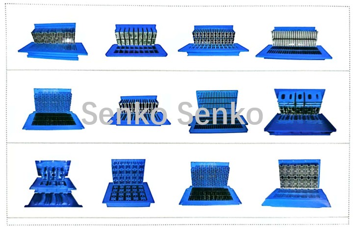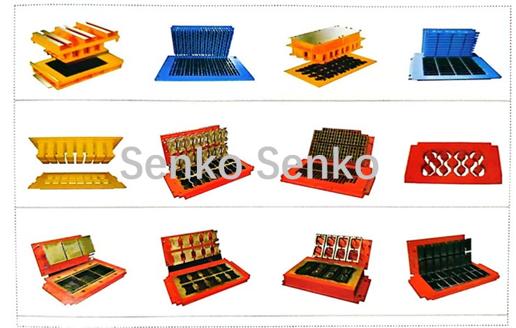 Hay muchos tipos de moldes, siendo los más comunes: moldes para bloques de muro de contención, moldes para ladrillos de cemento, moldes para adoquines de césped, moldes para bordillos, moldes para ladrillos huecos, moldes para adoquines, etc., y también hay muchos más moldes personalizados disponibles.