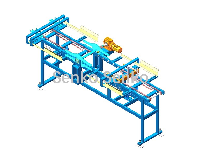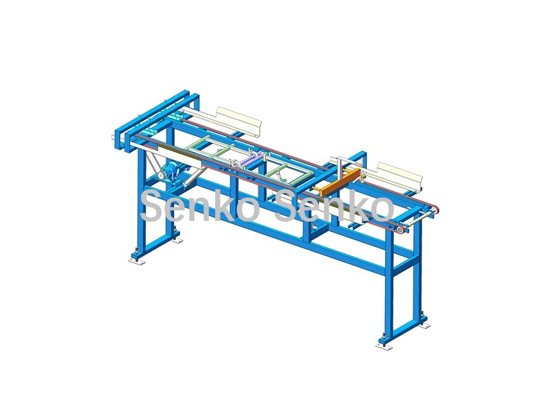Tras separar los ladrillos, el palé vacío se transporta mediante una cadena. Se puede instalar un mecanismo de volteo en el transportador de cadena para voltear el palé vacío y, a continuación, empujarlo hacia la máquina paletizadora.