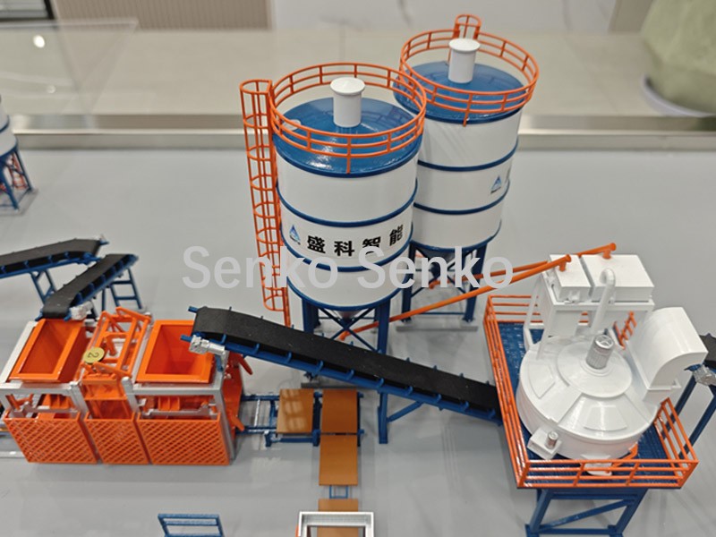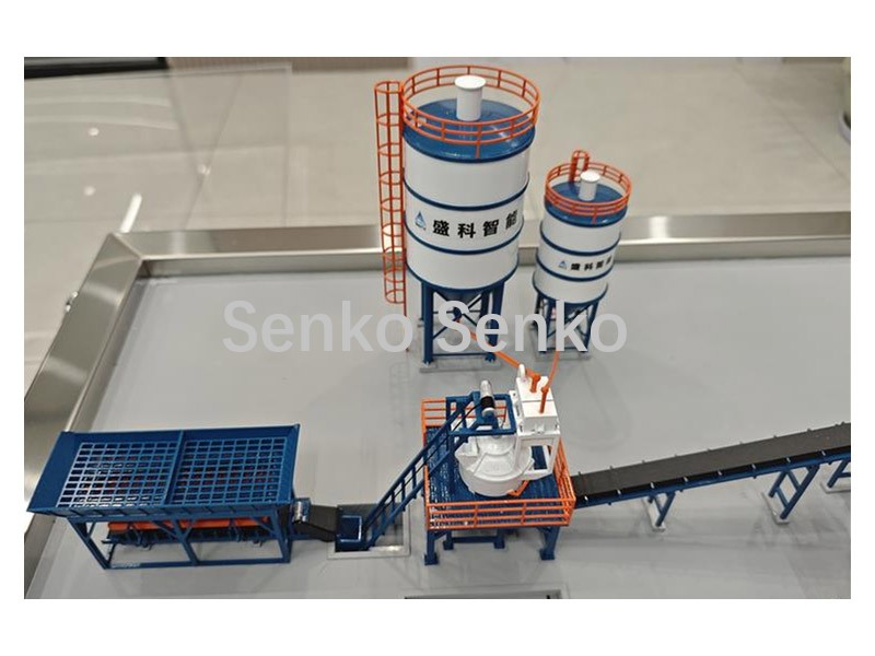 | 1, Máquina dosificadora | 2, Transportador de material base | 3, Mezclador | 4, Silo de cemento | 5, Tanque de aceite |